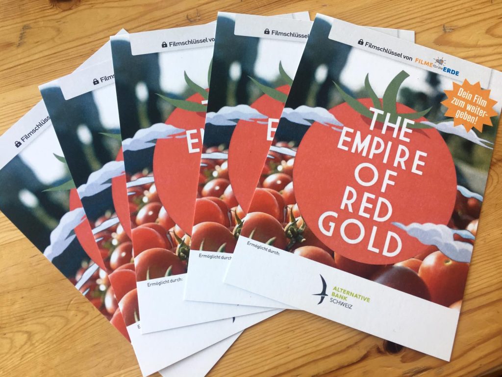 Am 04. März 2019 war Filme für die Erde zum fünften Mal zu Gast bei der Nachhaltigkeitswoche Zürich. Zusammen mit der Alternativen Bank Schweiz (ABS) zeigten wir im Audi Max der ETH Zürich vor mehr als 40 Personen den Film THE EMPIRE OF RED GOLD. Darin dokumentiert der Filmemacher Jean-Baptiste Malet die Absurditäten des globalen Tomatengeschäfts. Ein Imperium des roten Goldes.